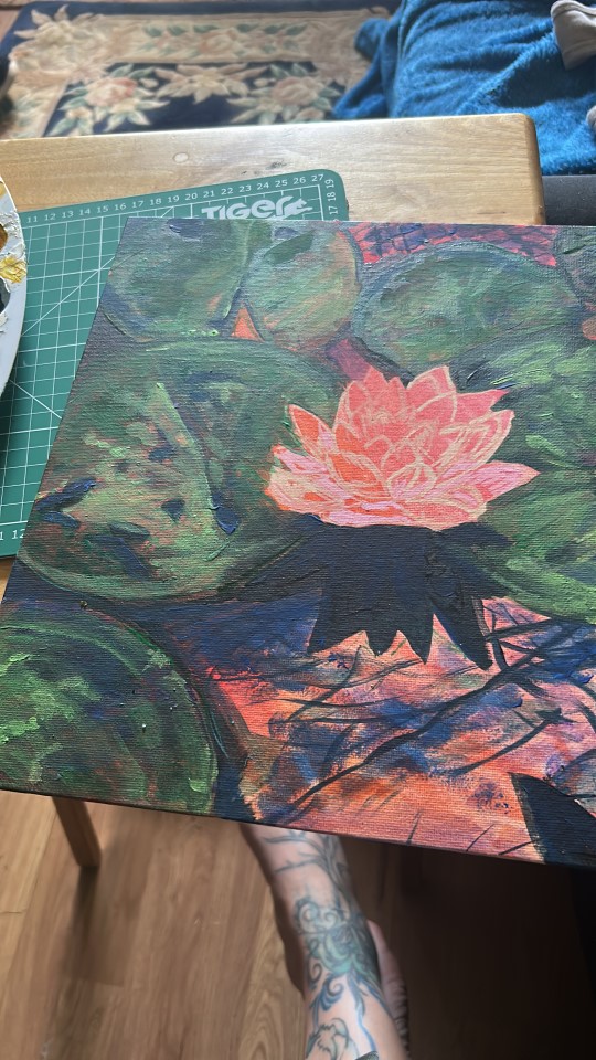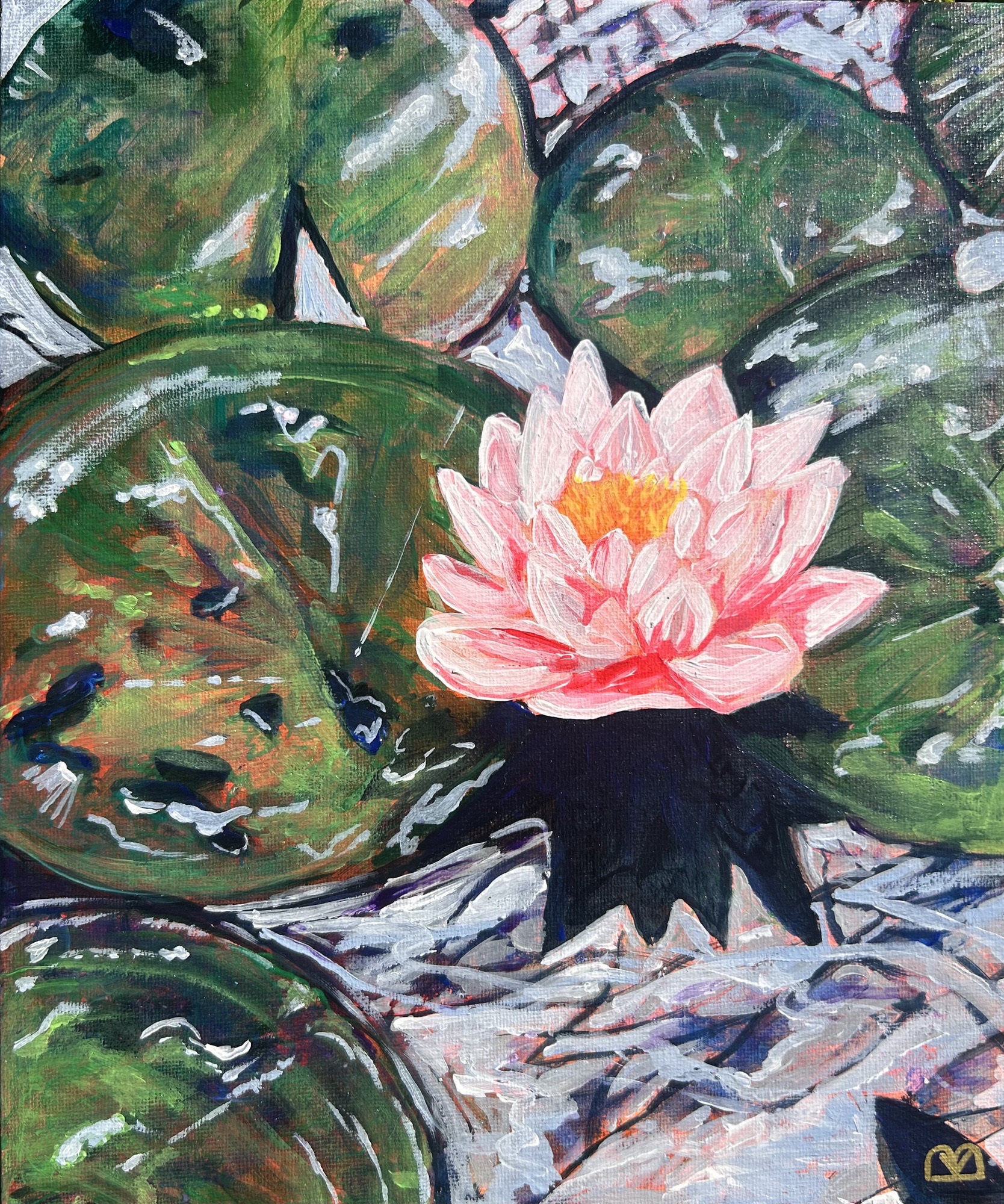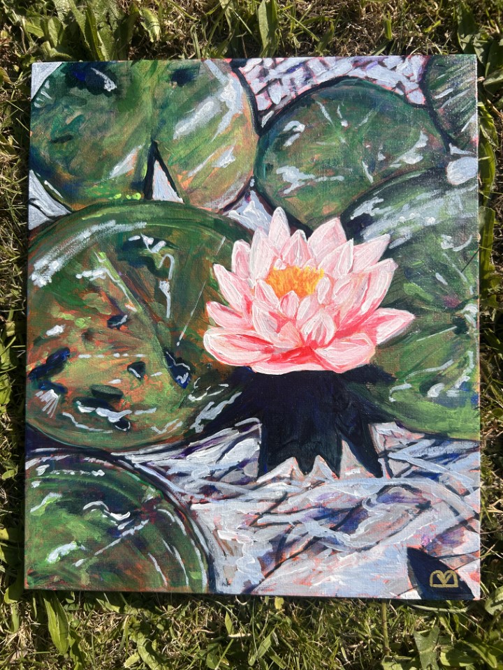One of the works I’ve recently completed focuses on the lily — a flower that has long been a symbol of renewal, growth, and resilience. Painting it, I found myself thinking about how beauty can emerge from murky waters, how light and color can break through the shadows. In many ways, it mirrors my own process: finding clarity in the midst of busyness, and turning reflection into something tangible.