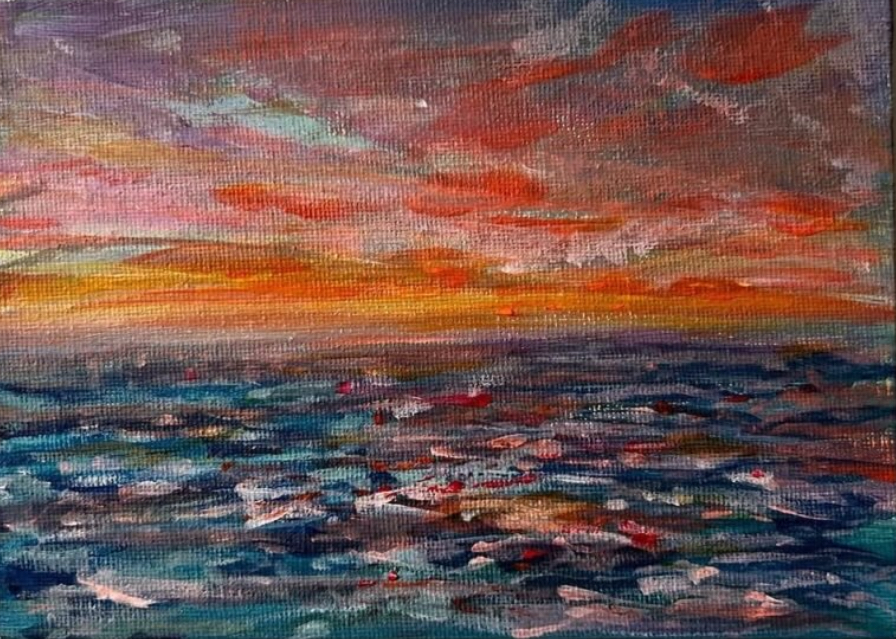 The piece I submitted for this exhibition is a seascape, a work that reflects both the movement and stillness of the ocean. For me, the sea has always held a duality — vast and powerful, yet deeply meditative and grounding. It felt like the perfect subject to share in a space that celebrates limitless creativity and artistic voices from every corner of the world.